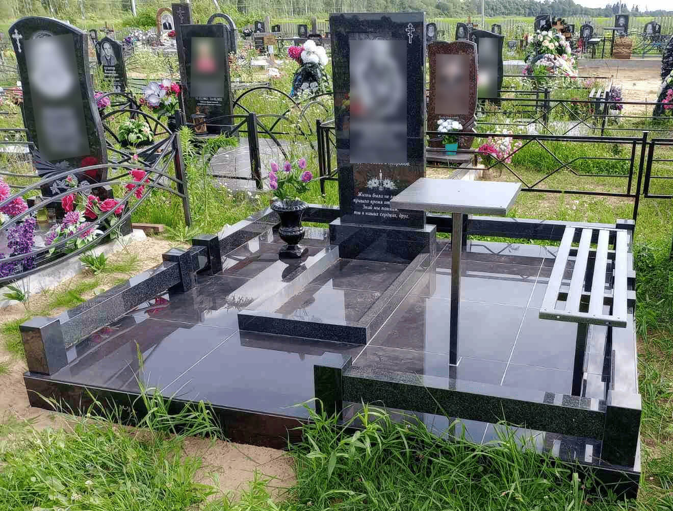 Это один из самых важных практических факторов. Перед заказом необходимо точно замерить свободное пространство перед памятником, чтобы комплекс не выглядел громоздким и не выходил за границы участка. Для стандартного места захоронения (≈ 2х2 м) идеально подойдет компактный комплект с лавочкой длиной 120 см и столиком 40x60 см.