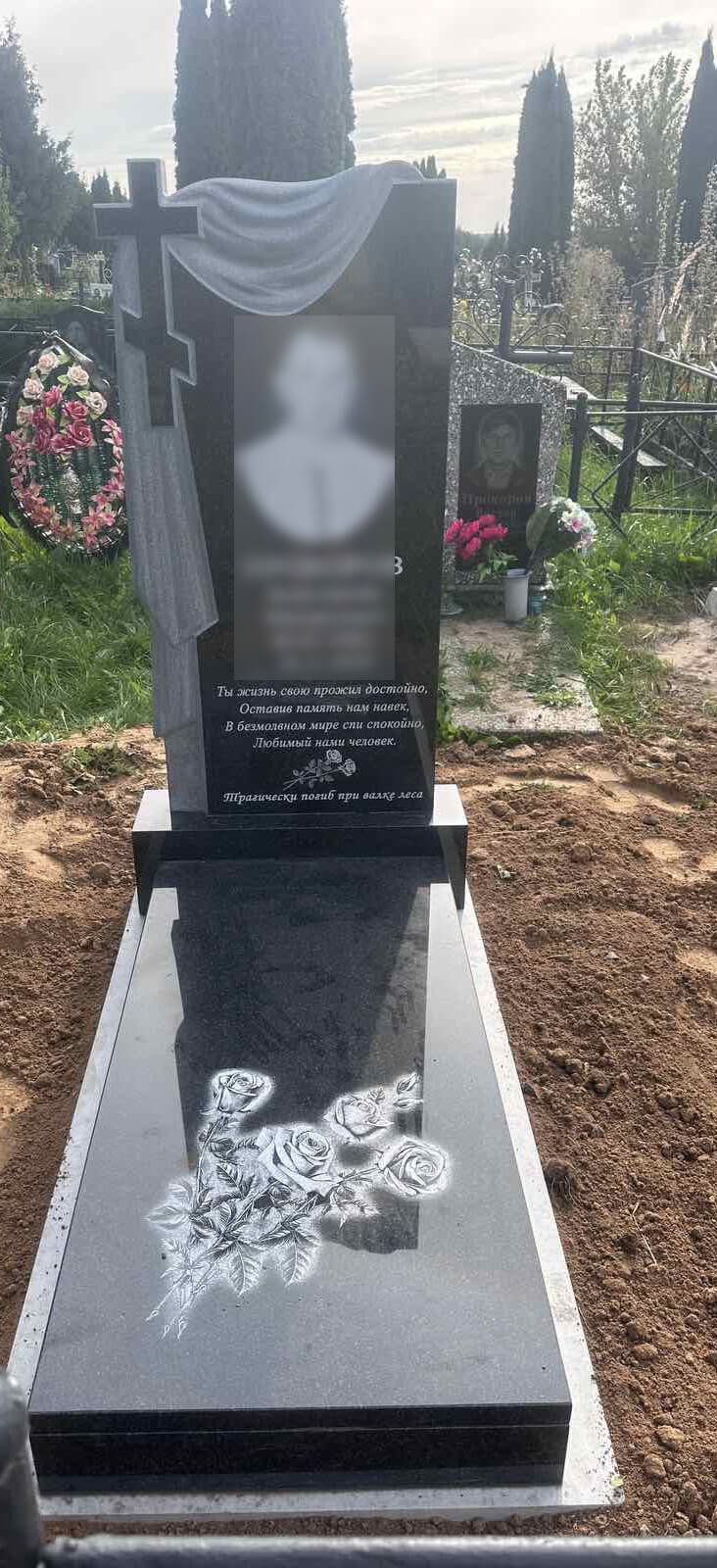 Памятник из белого и чёрного гранита (Мансуровский гранит и Габбро-диабаз)